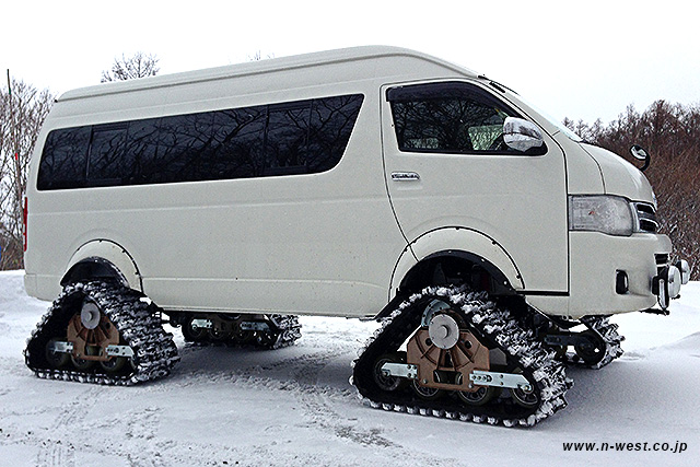ハイパーデルタは一般車両では走行不可能な雪上などを走破するための脱着式ユニットです。また運転操作も普通車両と変わりません。そしてフルクローラー車よりも低価格です。