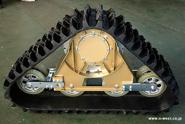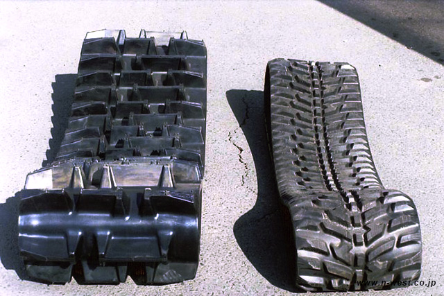 左の写真は、新型のハイパーデルタと、従来のデルタMとのクローラーの違いとなります。