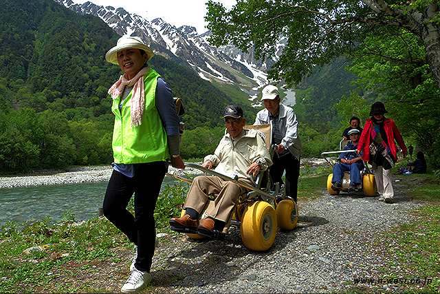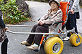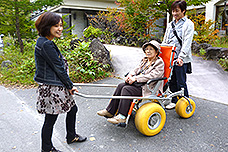 ジャリスターの最大の特徴は折り畳み式の牽引バーが装着されていることです。これにより、従来の車いすでは押すことしかできなかったものが、引くということもできるようになり、特に介護者への負担が大幅に軽減されることになりました。