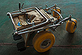 オフロード 不整地車いす"ジャリスター"には、通常の"ジャリスター"(写真右)と、"ジャリスター Sタイプ"(写真左)があります。